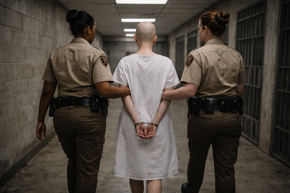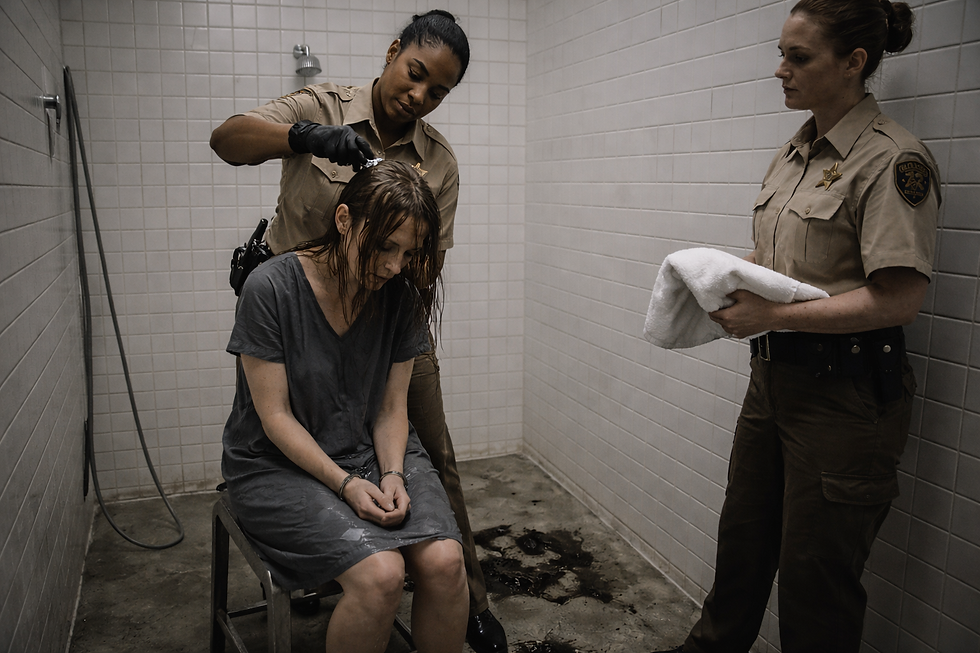 The shower was in a separate room, down a short corridor. She walked between two guards, her cuffed hands making small clinking sounds with each step. The third guard followed behind. Through the observation windows in other doors, she caught glimpses of other cells, other lives, other women who would wake up tomorrow and go on breathing. She hated them for a moment, a hot flash of jealousy so fierce it surprised her. Then it faded, leaving only exhaustion.