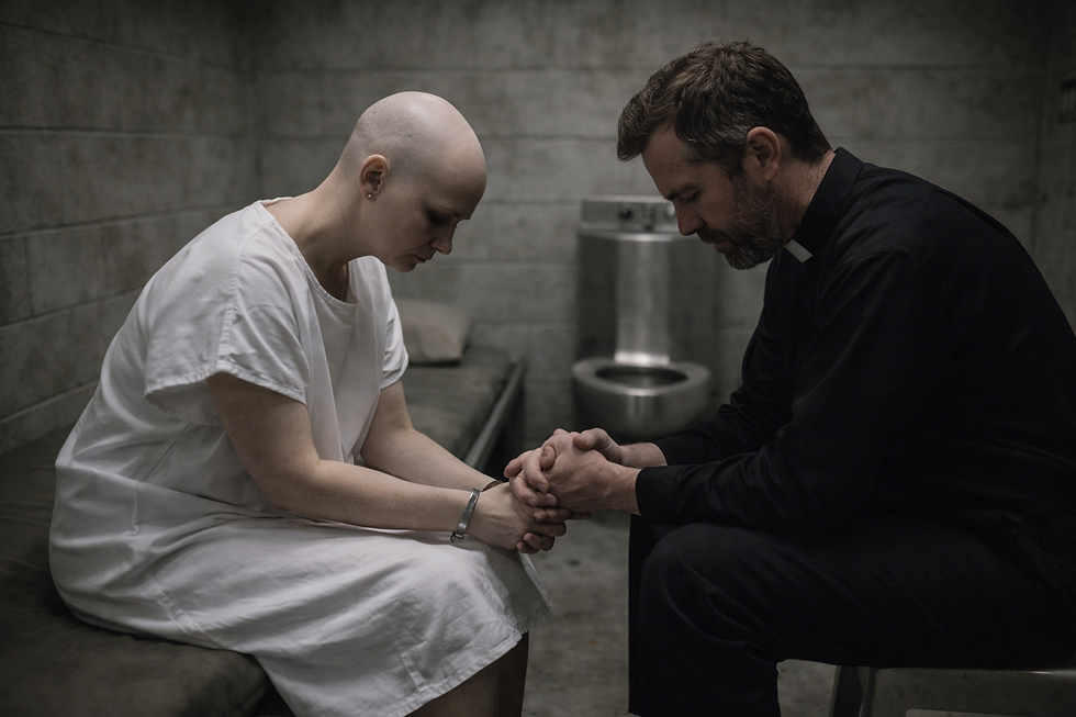 The chaplain wept openly, his shoulders shaking, his hands clutching his Bible. He was still praying, his lips moving even through the tears, asking God to receive this child, this lost and broken child, into whatever mercy might exist.